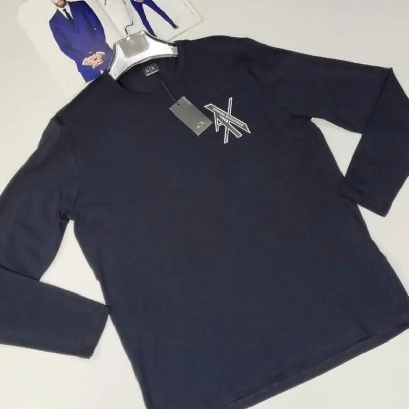 Мужская футболка с длинным рукавом темно-синего цвета , c логотипом бренда спереди, состав - 95% котон, 5% лайкра, приятная к телу, полномерная.Размер L . Замеры на Л , плечи 44 , грудь 54 , длина рукава от плеча 63 , длина 70 .