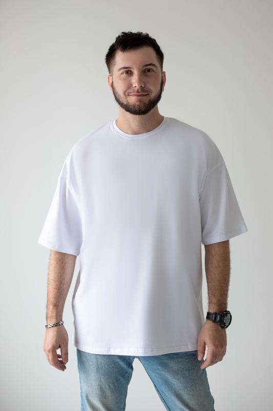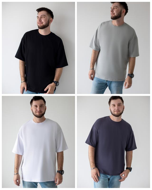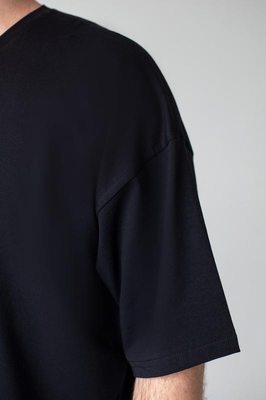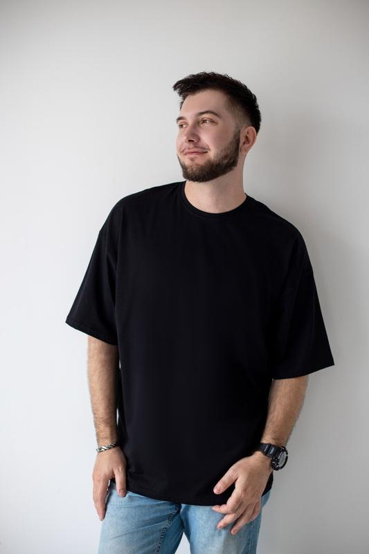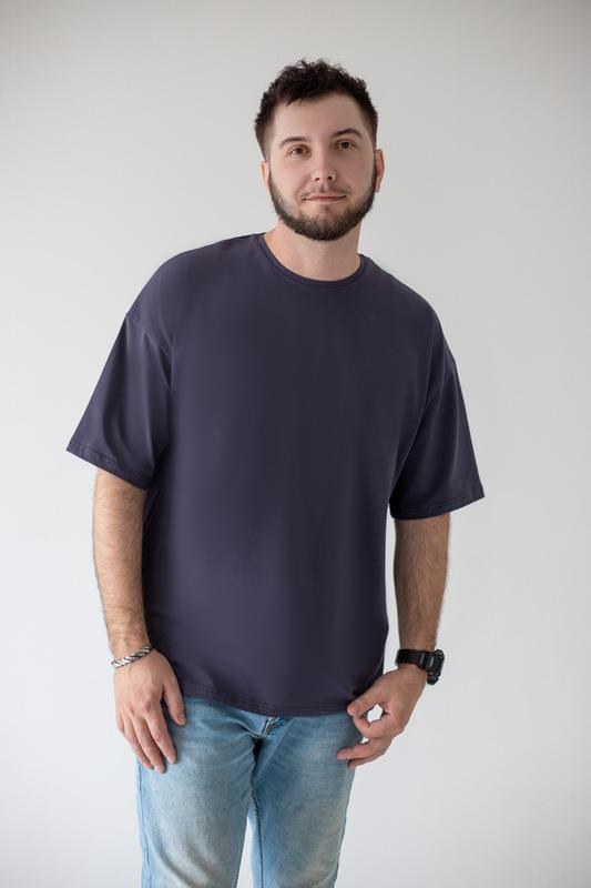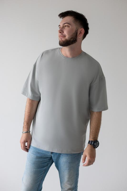 Базова чоловіча футболка oversize з короткими рукавами зі стрейч-куліру пеньє. Модель футболки з округлим вирізом і коміром-стійкою з еластичного матеріалу. Полотно натуральне за складом, може давати усадку після прання.
