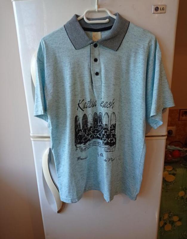 Красивая стильная мужская винтажная футболка-поло, оригинальный цвет -серо-голубой, размер пишет «М», будет и на «L» (для точности внизу см.замеры). Фирма –французский бренд Сlaude de Pierre. На футболке изображена группа серфингистов с пляжа на Гаваях, с наличием их подписей. Состав:100 % -качественный хлопок. Замеры следующие: 1.Ширина в плечах –50 см. 2. Ширина по спине ( от подмышки до подмышки )- 53 см. 3. Длина рукава по внешнему шву- 20 см. 4. Длина рукава по внутр.шву- 18 см. 5.Общая длина (от плеча) - 68 см.