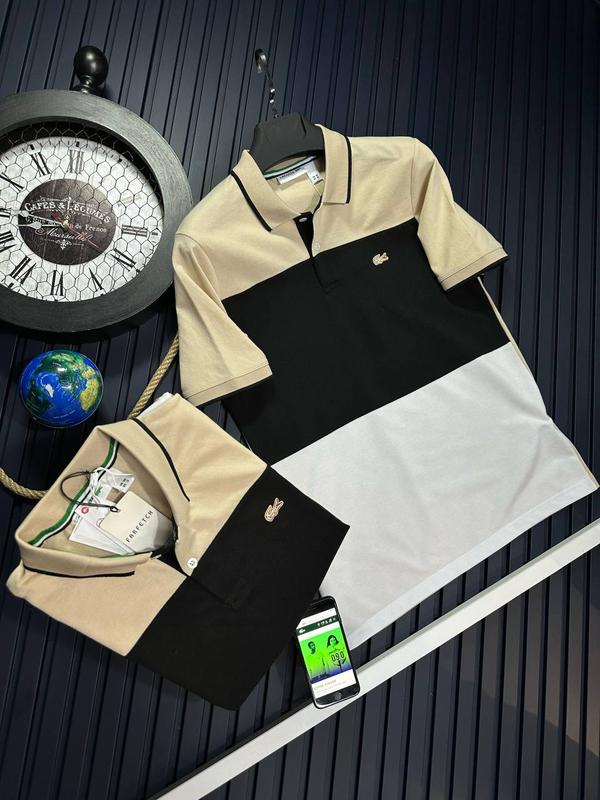 Чоловіча стильна футболка трьохкольорова поло lacoste