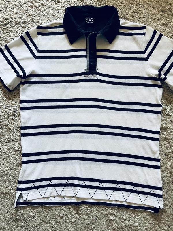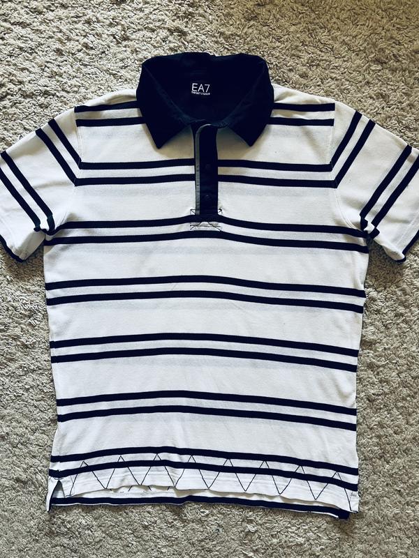 Статусная футболка поло знаменитого бренда Emporio Armani, трикотажная. cotton, сзади лого бренда, размер XL, L- см замеры ПОГ- до 60 см