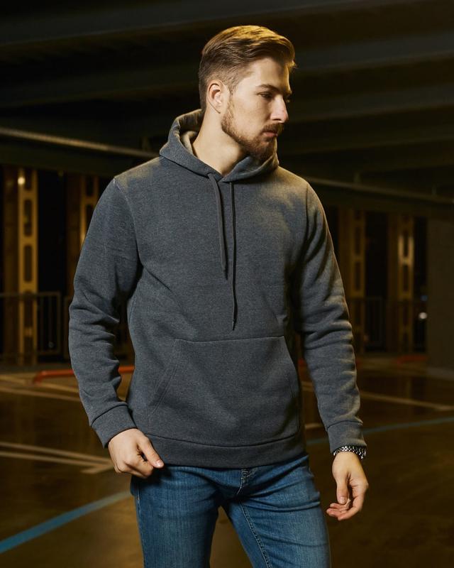 Сіре худі кенгуру на флісі, худі утеплене чоловіче