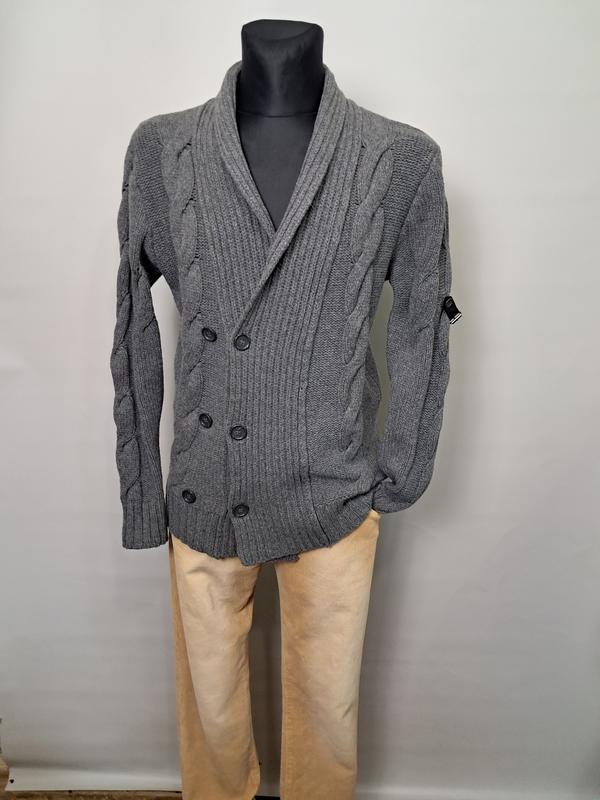АРТ. 3/2/7/2 Кардиган чоловічий від бренду Gazzarrini Italy Преміальний італійський бренд Річ у стані нової. Склад: 80% вовна, 20% поліамід (щоб не втрачав форму). Оригінальна, стильна, якісна річ. Розмір вказаний L Виміри: НОГ 54 см, НОС 54-57 см, довжина рукава 70 см, довжина виробу 70 см