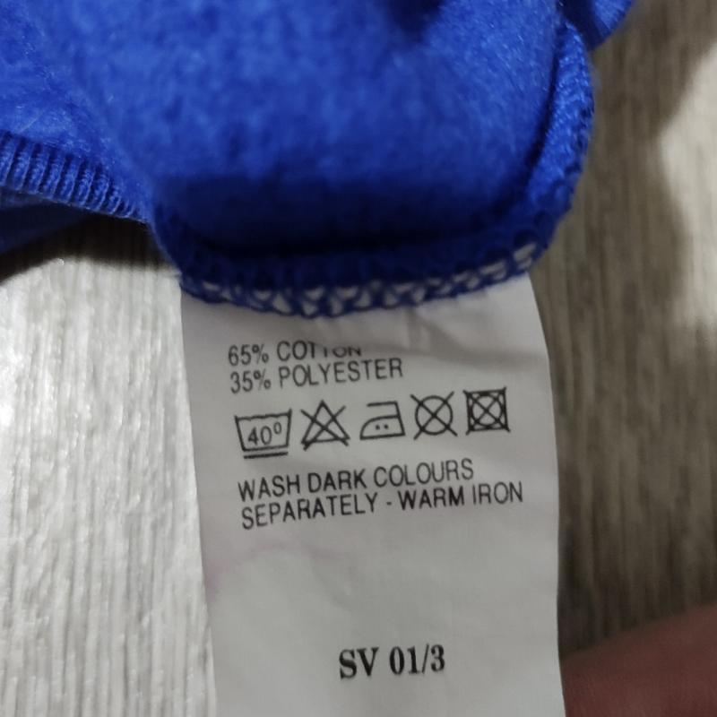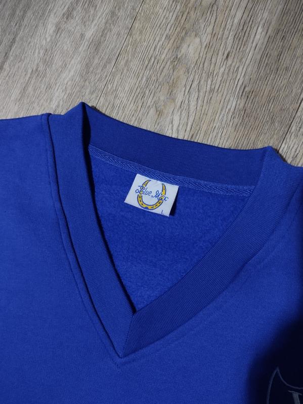 Мужской фирменный свитшот синего цвета "Blue Mix" в отличном состоянии, без дефектов. Материал средней плотности, с внутренней стороны есть небольшой начёс. Состав: 65% хлопок/ 35% полиэстер.