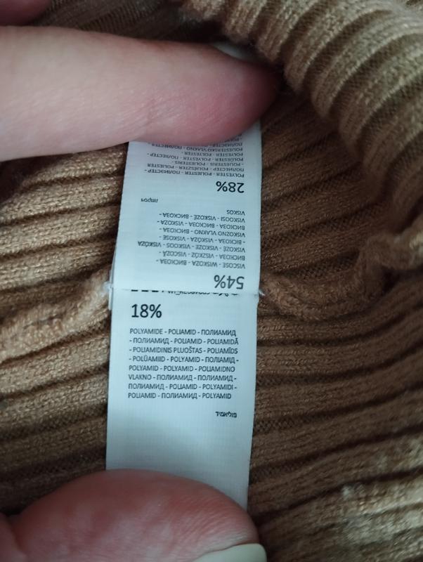Бежевий светр в рубчик з високою горловиною