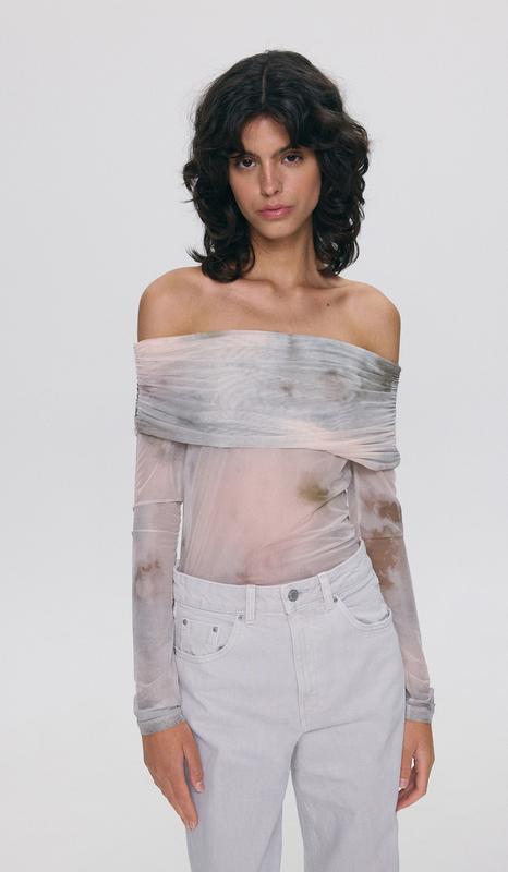Кофта приталеного крою, виконана з сітчастого трикотажу.