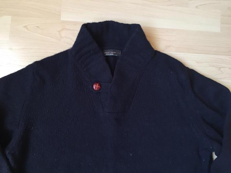 Дуже тплая кофта розмір вказаний M,але підійде і на S, 80% вовни,колір темно-синій,купували за 39 євро,виявилася замалою,м'яка,не колеться,виміри:від коміра, довжина-66, ПОГ-56, внизу гумка-43-44, рукав - 62,5.