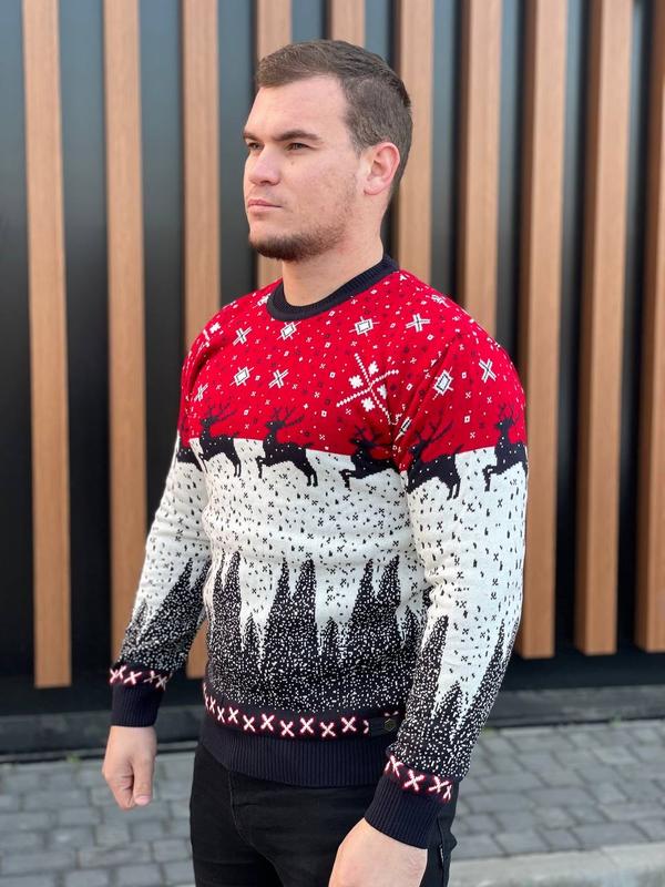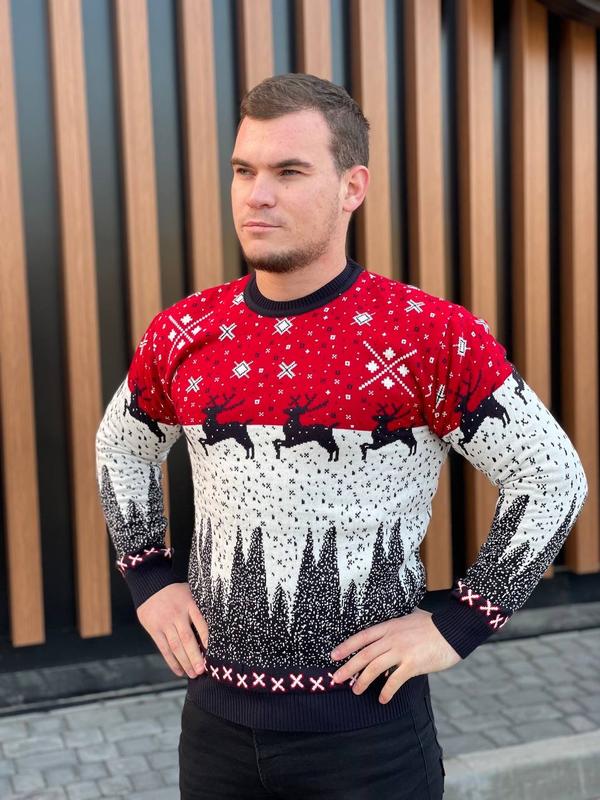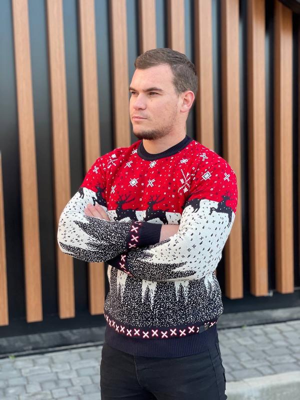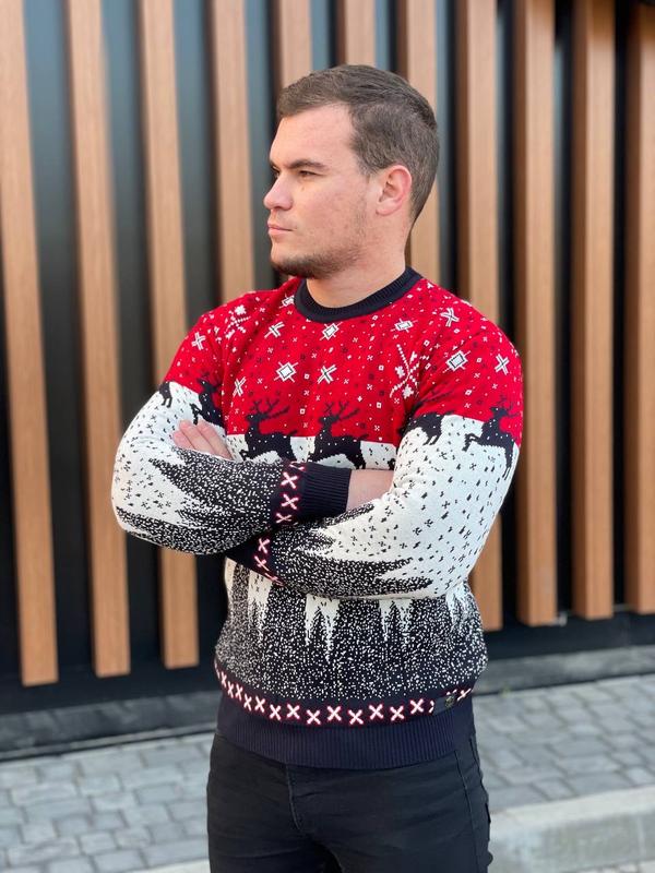 Светр шерстяний🎄❄теплий світер, светр з оленями, фемілі лук