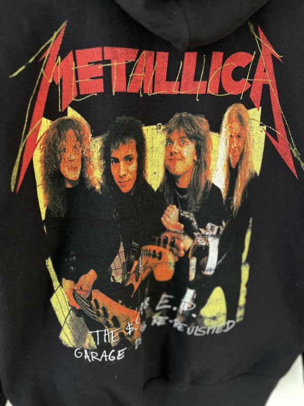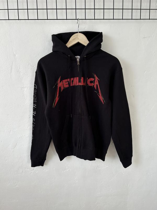 Вінтажне худі Metallica, чорного кольору з логотипом на грудя, рукаві та спині, нереально виглядає на тілі розмір S-М