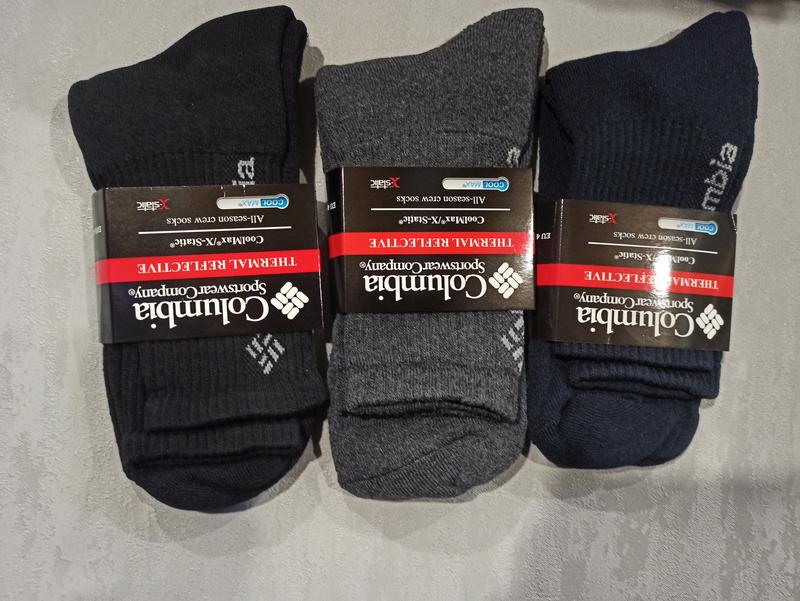 Чоловічі термо шкарпетки Columbia в асортименті, набір 3 шт. Розмір - one size ( довжина підошви 24 см-34 см, висота 18 см). Склад тканини - шерсть 57%, акрил 35%, інші матеріали 5%, спандекс 3% . Кольори в наборі: чорний, сірий і темно-синій.