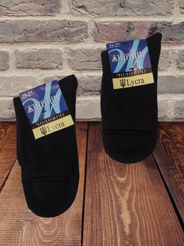 Шкарпетки чоловічі бавовна + стрейч, Україна. Відмінна якість, дуже добре носяться, що дихають. Колір чорний.Розмір 27-29