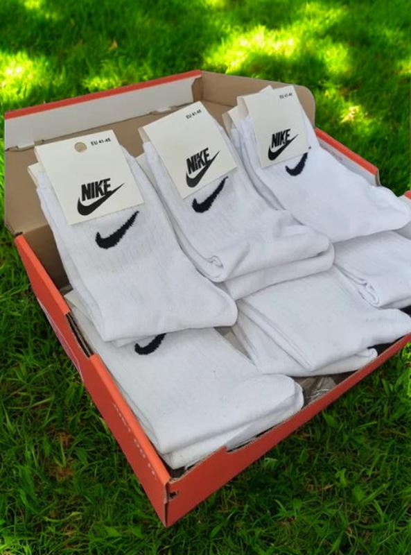12 пар в упаковці, Шкарпетки NIKE високі білі р. 36-41 Високі білі шкарпетки теніски NIKE - це стильний та функціональний аксесуар, призначений для спортивних занять, фітнесу, бігу чи просто як комфортна частина вашого повсякденного гардеробу. Вони відрізняються такими характеристиками: 1. Матеріал: Шкарпетки виготовлені з високоякісного дихаючого матеріалу, що дозволяє вологи швидко випаровуватися, забезпечуючи комфорт під час активних фізичних навантажень. Матеріал також міцний та довговічний. 2. Високі: Висока довжина шкарпеток надає їм додаткову підтримку та захист для гомілки та кісточки під час спортивних занять. 3. Дизайн: Білі шкарпетки мають класичний та універсальний дизайн, який підходить до будь-якого спортивного чи повсякденного одягу. Логотип NIKE може бути на гомілки або стопі для додаткового брендового стилю. Шкарпетки теніски NIKE- це ідеальний вибір для тих, хто цінує комфорт, підтримку та стиль під час фізичних навантажень чи у повсякденному житті. Вони допоможуть вам залишатися активними та впевненими на кожному кроці.