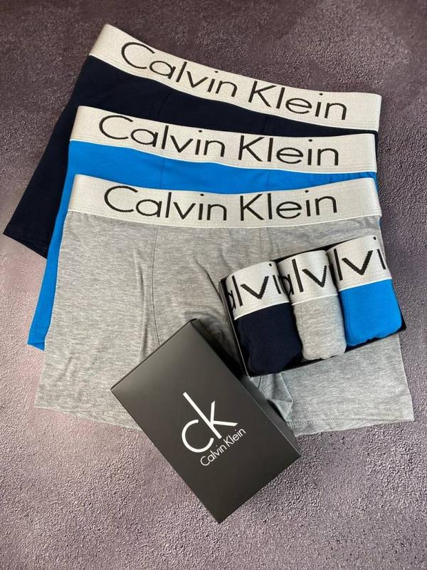 Чоловічі боксери в стилі Calvin Klein серії Steel3, зі сріблястою резинкою.