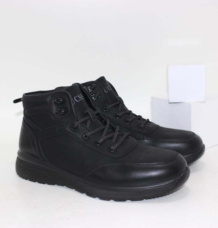 Чорні чоловічі зимові черевики на блискавці та шнурках