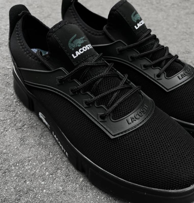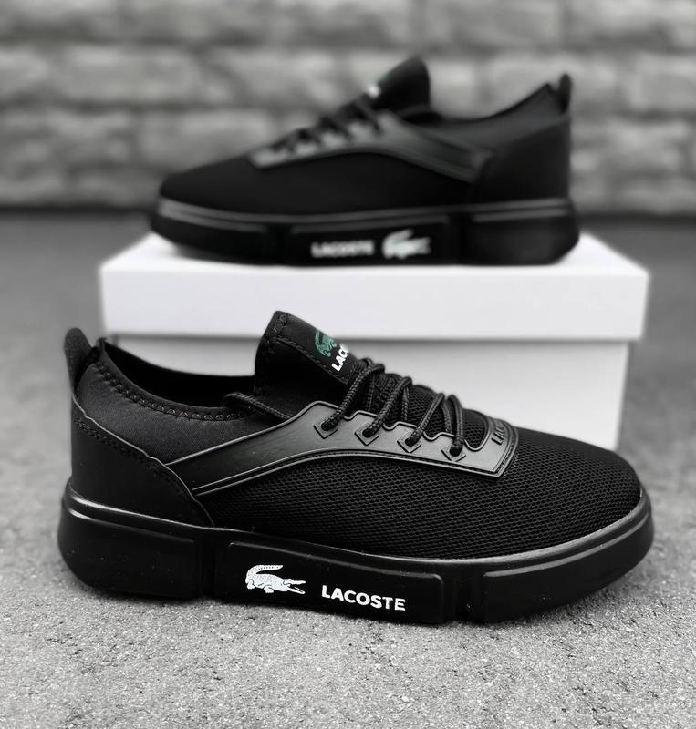 Кросівки чоловічі чорні. Кеди Lacoste кеді кросівки Чорні 40-44р Топ Якість! Відмінні варіант для повсякденного носіння. На нозі сидять дуже комфортно. Встигніть замовити потрібний Вам розмір! КОД: 04_1409 При замовленні від 2-х пар ЗНИЖКА! Матеріал: сітка, текстиль Колір: чорний Підошва: пінка Виробник: В'єтнам Розмір: 40-44 40р - 26 см 41р - 26,5 см 42р - 27 см 43р - 28 см 44р - 28,5 см