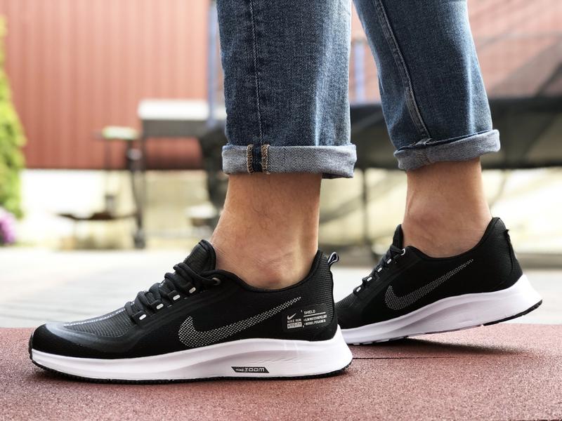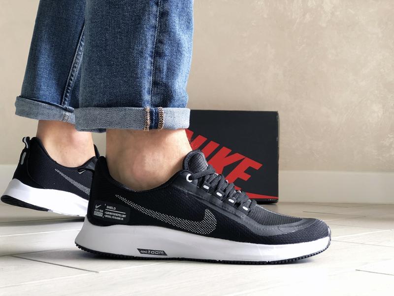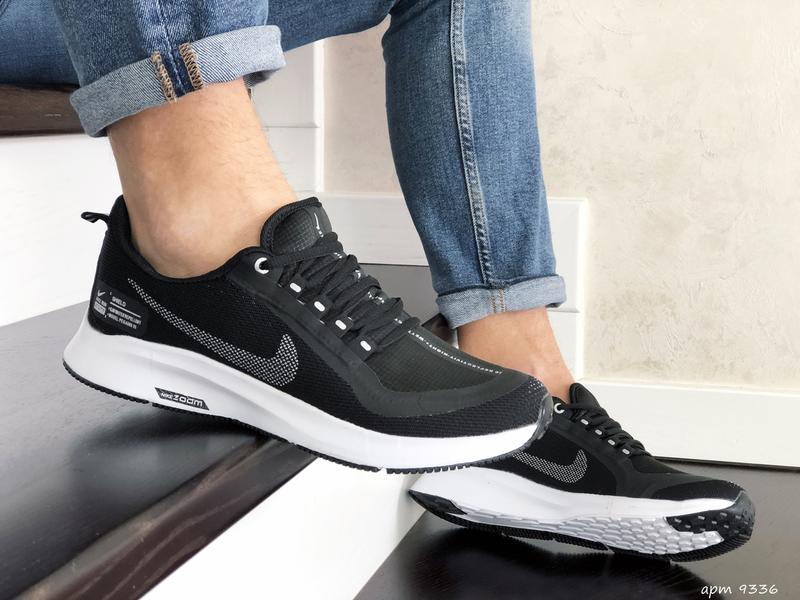 Чоловічі кросівки на літо nike air zoom black white летние дышащие кроссовки найк зум с вентилируемым верхом чорные с белым