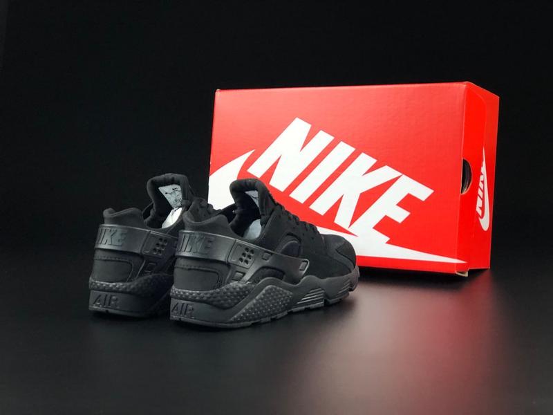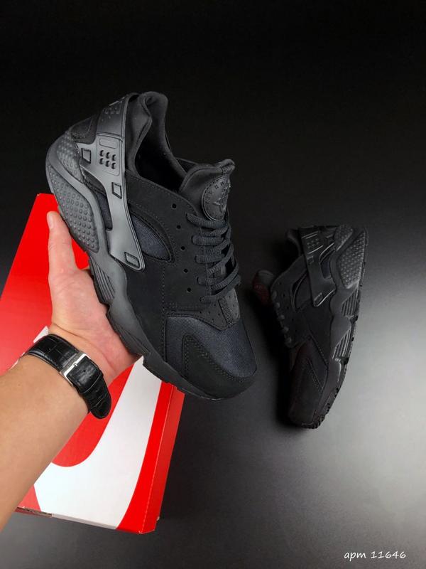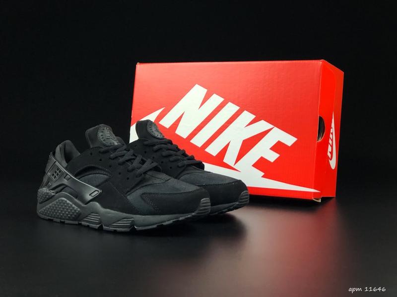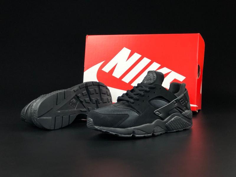 Новые мужские кожаные кроссовки Nike Air Huarache Black/ цвет черные. Низкие кроссовки Nike Air Huarache упакованный в фирменную коробку и упаковочную бумагу
