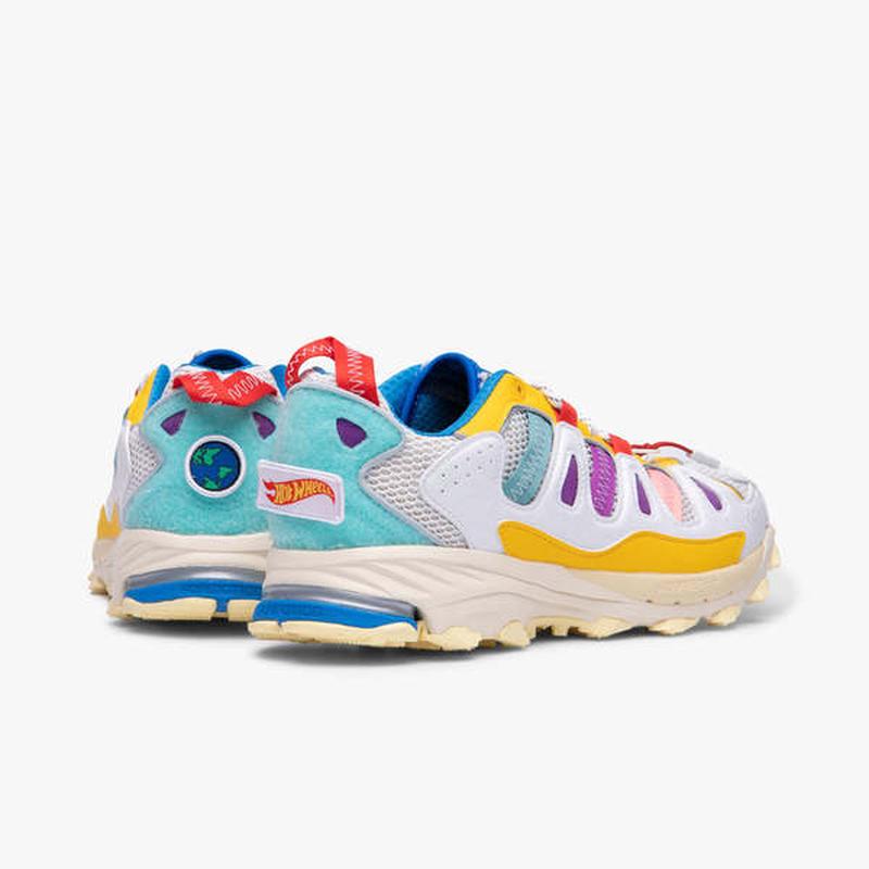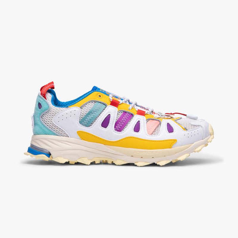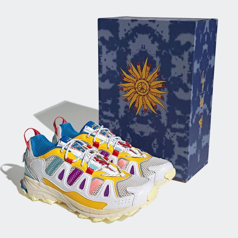 У партнерстві з Adidas Consortium і Hot Wheels Superturf Adventure від Шона Вотерспуна має сміливий дизайн, повний унікальних деталей. Його різнокольоровий дизайн виконано з використанням текстилю, шкіри та сітки, а також УФ-реактивні панелі на бічних стінках, на яких на сонці красуються логотипи Sean Wotherspoon і Hot Wheels. Спеціально пофарбоване крило доповнює вигляд спереду, а язичок на блискавці можна розстібнути, щоб відкрити слоган Hot Wheels It Not The Same Without The Flame. На додаток до цього, змінні нашивки з логотипом додають витонченості на каблуках кожної стопи, тоді як технології Formotion і adiPrene+ забезпечують стабільність і амортизацію проміжної підошви. Adidas Consortium x Sean Wotherspoon x Hot Wheels Superturf Adventure доповнено прогумованою підошвою, яка забезпечує тривале зазчеплення під час вашої наступної екскурсії на природі.