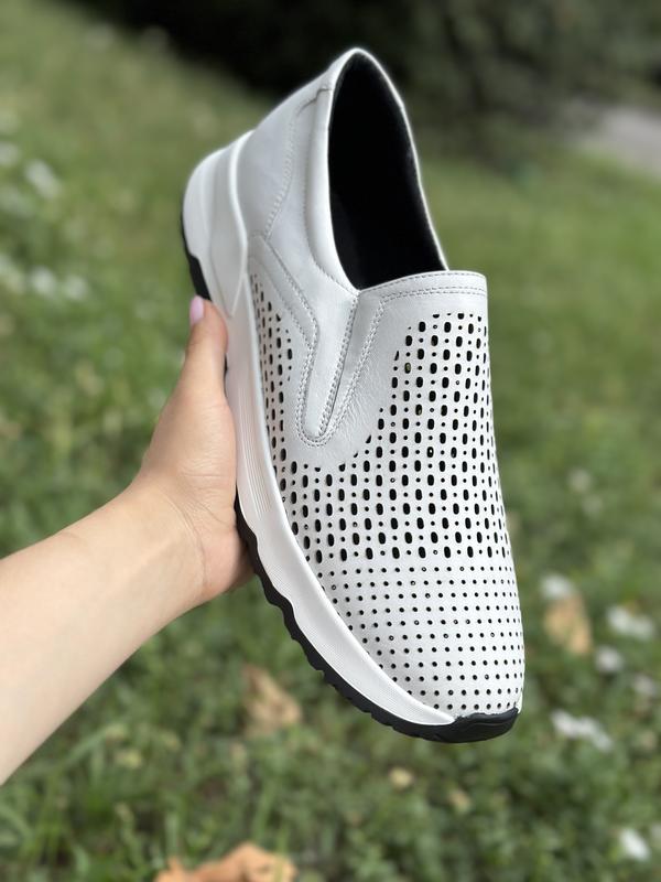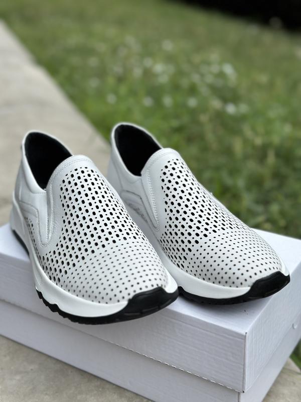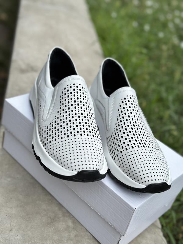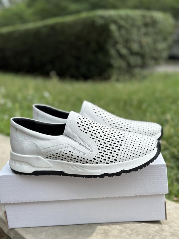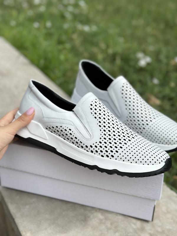 Чоловічі білі шкіряні кросівки з перфорацією / білі чоловічі макасини / кросівки з перфорацією/ білі мокасини з натуральної шкіри