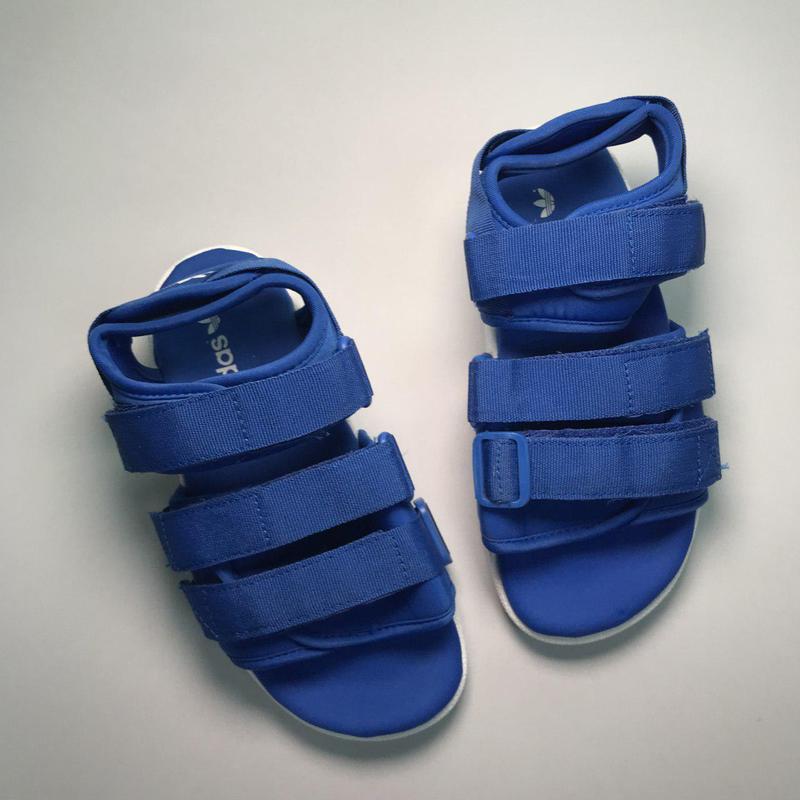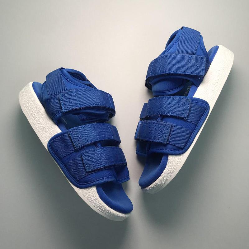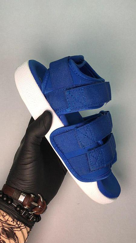 Мужские Adidas Sandals Blue White, сандалии Адидас синие на липучках