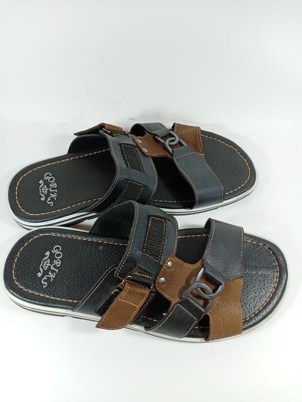 Шкіряні шльопанці. Підйом регулюється липучкою. розміри 43,45 фірма Goriks, Харків Устілка в розмірі 45 29.5 см Дивіться невелике відео - кнопка відеоогляд. (працює не у додатку, а з сайту шафы) Доставка: Відправка післяплатою, за умови авансу на карту в розмірі вартості послуг Нової пошти туди-назад. Якщо Харків, то приміряти та купити можна м. 23 серпня. Звертайтесь, будь ласка.