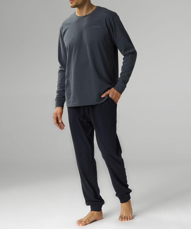 Піжама atlantic nmp-372 чоловіча футболка довгий рукав + штани з манжетами ,графіт