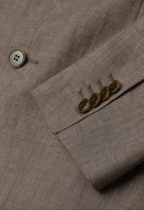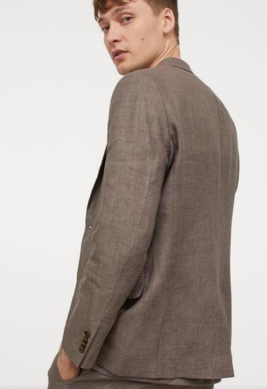 Однобортный блейзер из льняной ткани с узкими лацканами, декоративной петлицей, нагрудным карманом и передними карманами с клапаном. Застежка на две пуговицы, а также декоративная застежка снизу на рукавах. Сзади шлица. Два внутренних кармана. На подкладке. Slim Fit - узкая посадка, убранная в груди и талии, что в сочетании с довольно узким рукавом создает облегающий силуэт.