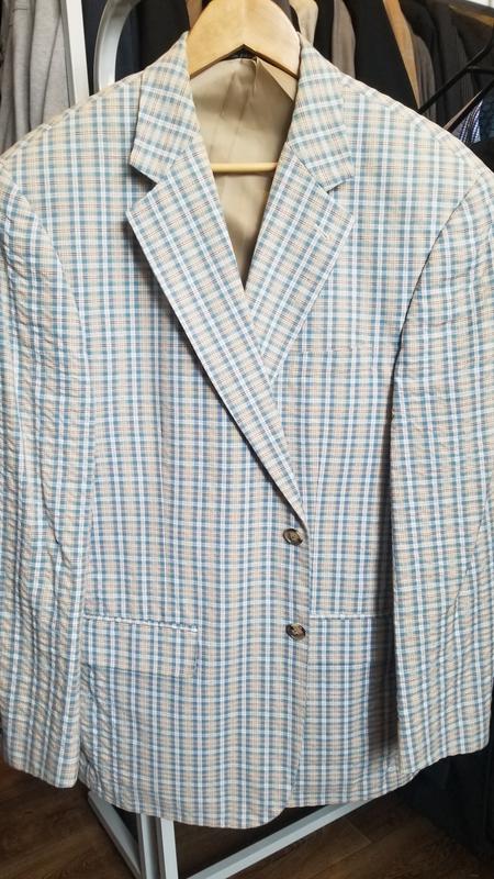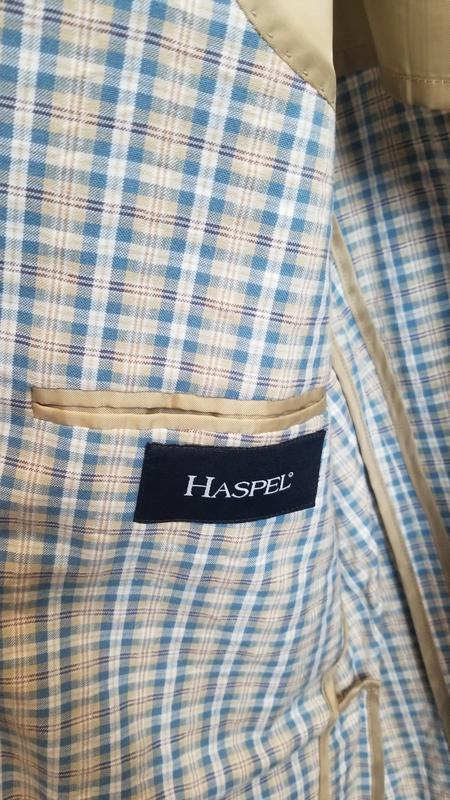 Легкий чоловічий піджак в клітину від Haspel. Натуральна дихаюча тканина на основі волокон бавовни робить його максимально придатним для теплих сонячних днів. Модель має напівприлеглий силует, накладні кишені, прямий лацкан та дві шліци.