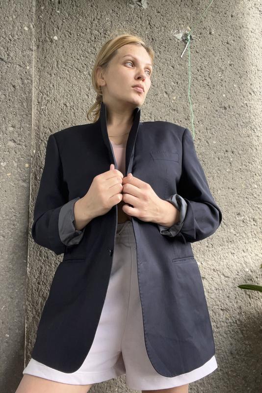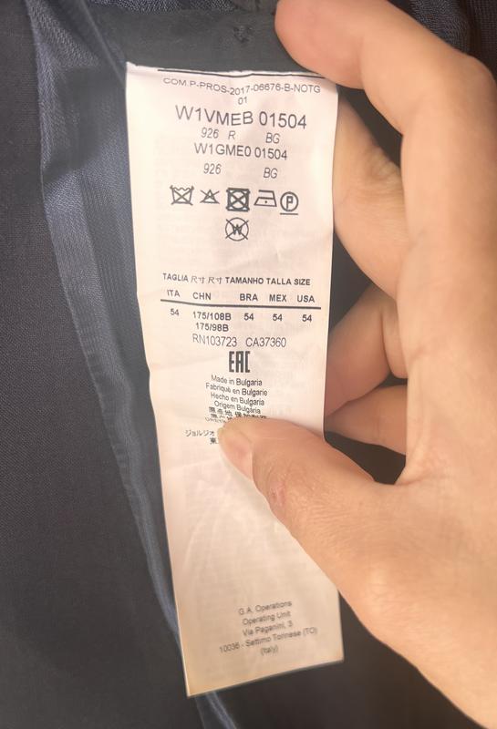 Класний піджак від Армані, класно сидить, якісна тканина стан ідеальний, один момент- надірвана підкладка на 0,6 мм біля внутрішньої кишені, але планую акуратно зробити реставрацію