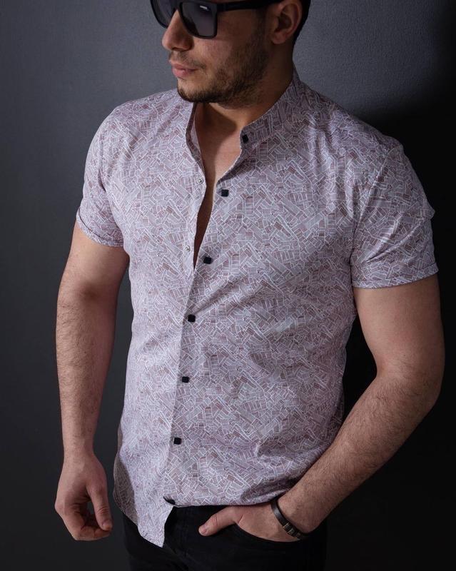 Чоловіча сорочка з коротким рукавом tu m s / світла / біла з абстрактним принтом / безрукавка/ на ґудзиках / теніска з віскози