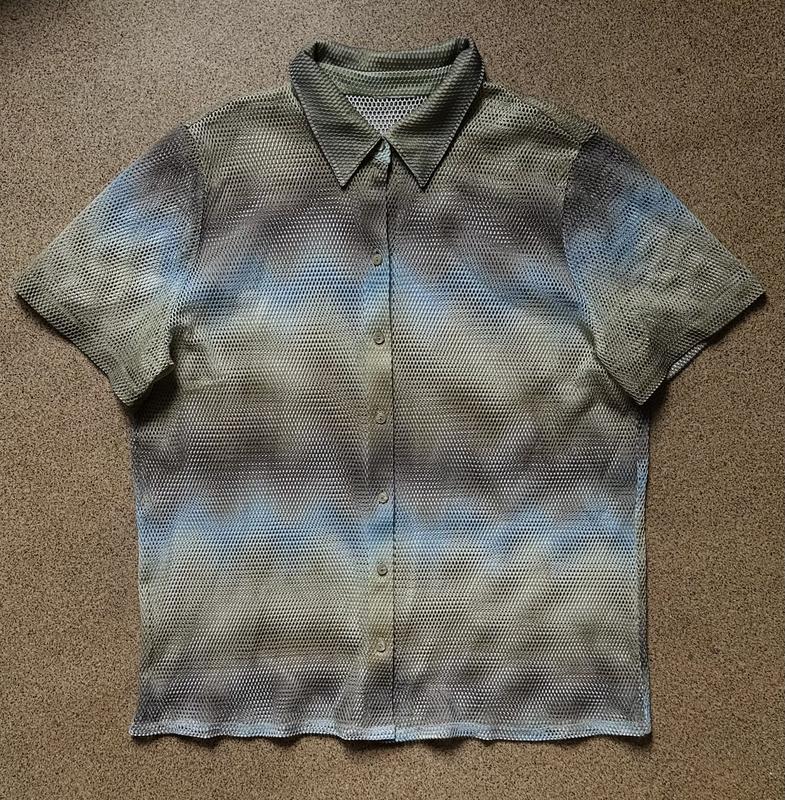 Актуальна сорочка в сітку, стан ідеальний. Вільний крій. На м-л. Склад поліестер. Бірок немає.