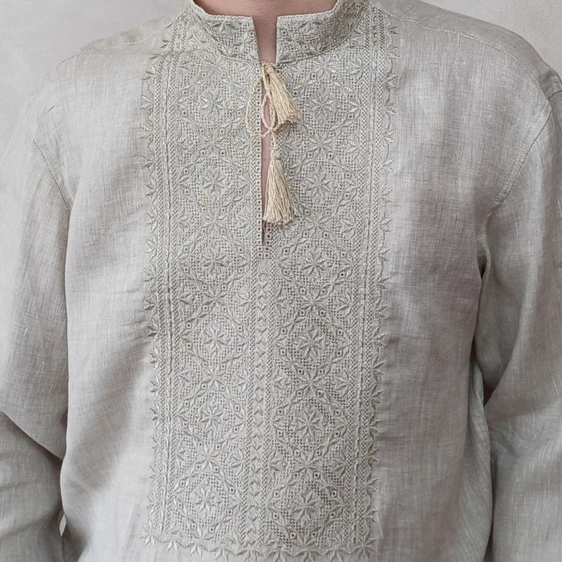 Вишиванка чоловіча з довгим рукавом. Колір льон натуральний невибілений вишивка сіро-бежева.В наявності на розмір комірця 38, 39, 42, 44, 45, 46
