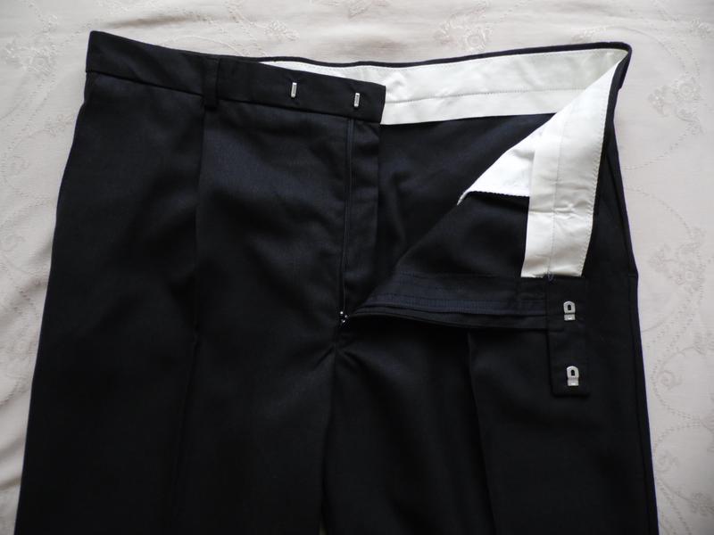 Брюки застегиваются на молнию и 2 крючка по поясу.