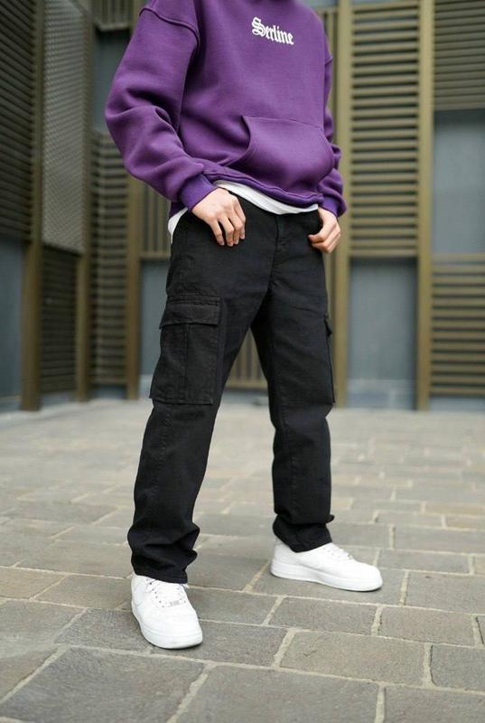 Чоловічі чорні широкі джинси / оверсайз штани бавовна 100%
