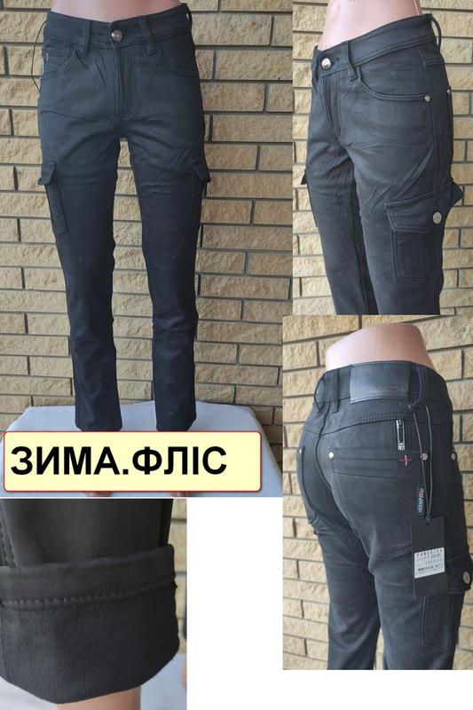 Джинси чоловічі зимові на флісі з накладними кишенями "карго" стрейчеві