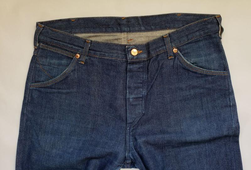 wrangler blue bell репродукція вінтажних джинсів. Стан хороший,ушивались на w34 . Лівосторонній плетіння. Індиго. Раритет хоч і не вінтаж.