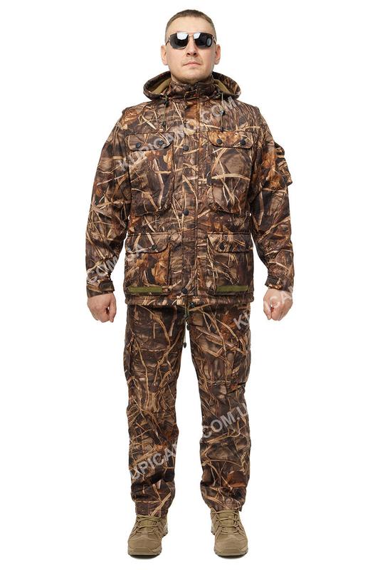 Непромокальний костюм чудово підійде для полювання або риболовлі у дощовиту осінньо-весняну пору. Комплект камуфльованого одягу виготовлений зі щільного вітрозахисного, стійкого до перетирання тканини Дюспо-Бондинг. Дуже універсальна модель: у кишені є патронташ, який ви можете дістати в потрібний момент, а також заховати його, якщо ви рибалка, а не мисливець. Перевага куртки цієї моделі в тому, що вона за 30 секунд перетворюється на жилетку, це дуже зручно ви поїхали рибалити або полювати нудот, коли було холодно, а вдень сильно потеплило і ви відстебнули рукави та використовуєте як безрукавку. Тут є велика кількість кишень, тож ви з легкістю зможете носити всі свої речі біля себе.Раксьорівки в асортименті. Температурний режим: +5 до +20 ТКАНИНА: ДЮСКОМАНБРАНА, підкладка Мікрофліс РОЗМІР:44-46,48-50,52-54,56-58,60-62,64-66 Виробник: **************** Харьков