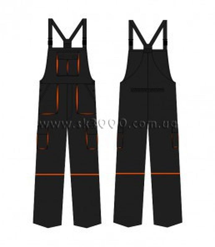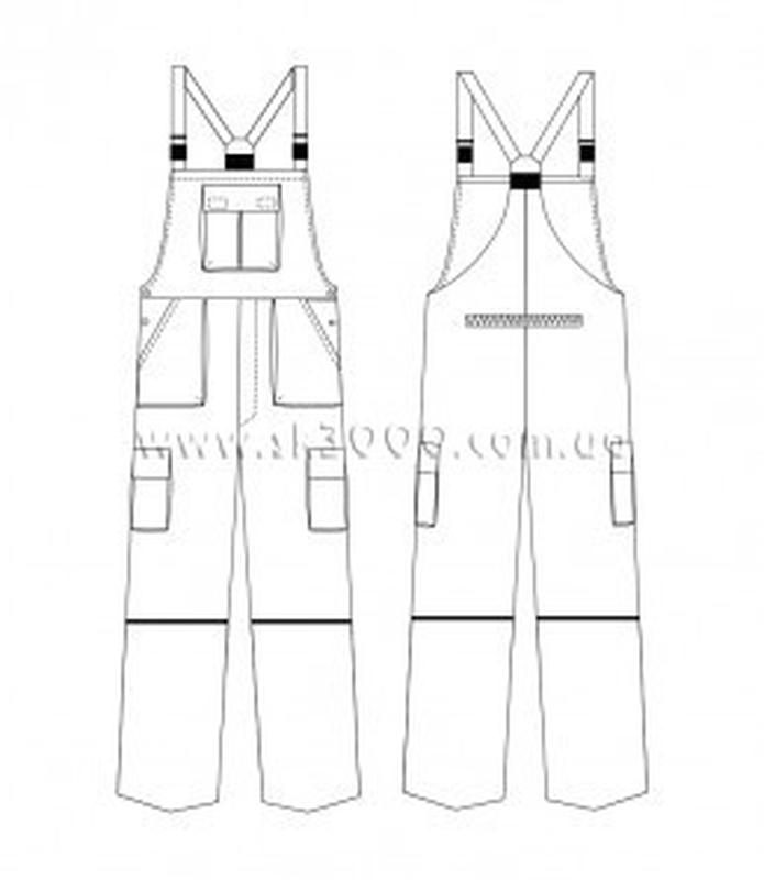 Напівкомбінезон "Дизель" має нагрудну накладну кишеню з клапаном на липучці та маленькою кишенею у лівому кутку нагрудної кишені. Довжину напівкомбінезона можна регулювати шлейками, при допомозі карабінів та рамок. Шлейкі з'єднуються зі спинкою напівкомбінезону через трикутну спинку, яка підгумлена на поясниці. З боків напівкомбінезон застібається на гудзики. Гульфік на блискавці. Бічні кишені фігурні, накладні, по типу "книжка". Штанини, нижче колін, відрізні, та по шву вшитий помаранчевий кант.