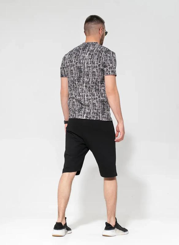 Футболка чоловіча чорно-біла. Виконана з турецького трикотажу - двох нитка. Не катається під час прання. Склад: бавовна 95%, поліестер 5%. Дуже зручна посадка по фігурі.