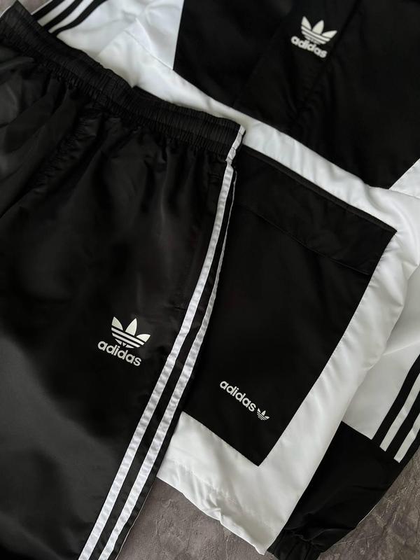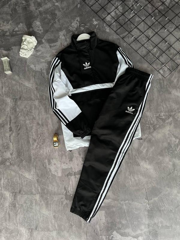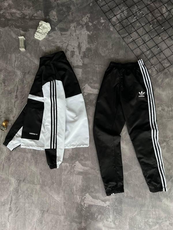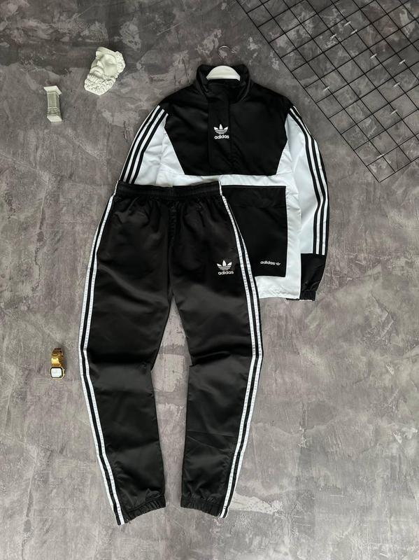 Чоловічий спортивний костюм Adidas чорний з білим весняний осінній Комплект