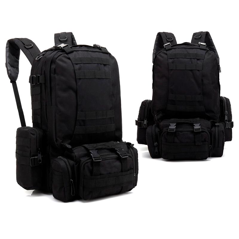 Тактичний рюкзак з підсумками на 50 літрів похідний військовий рюкзак 4 в 1 з системою Molle Black