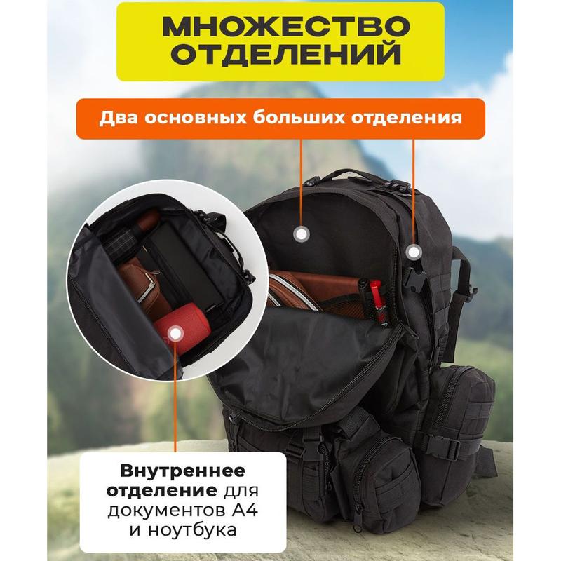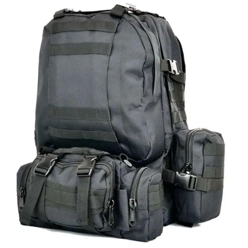 Тактичний чорний рюкзак виконаний з високоякісних матеріалів. На зовнішній та
