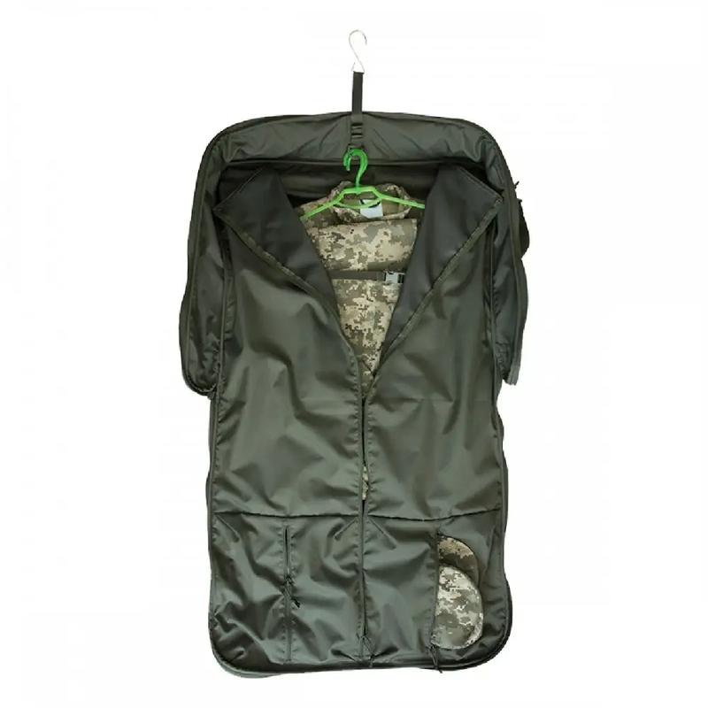 Сумка-чохол тактична для форменого одягу Acropolis Хакі (ЧСО-1) Сумка для одягу ЧСО-1 - це продовження серії тактичних сумок від українського виробника Акрополіс. Розроблена для зручного зберігання та транспортування верхнього одягу, військової форми, головних уборів та взуття під час відряджень, навчань чи тривалих подорожей. Зручний та продуманий дизайн. Ззовні - це сумка жорсткої конструкції, а в середині - м'який чохол для речей. Виготовлена з вологостійкого і надійного поліестеру. Довго носиться та розрахована на велику вагу. В середині сумки є латунний гачок для підвішування чохла, а також передбачене спеціальне кріплення для вішака для куртки, розвантажувального жилета, уніформи, сорочки, штанів. Одяг закривається в чохлі на замок-блискавку та три стягуючі поперечні стрічки з пластиковими пряжками типу «Фастекс». Як видно на фото, в нижній частині чохла є кишені для кепок, шапок, панамок. Берці, черевики чи невеликі чоботи компактно складаються в одну з зовнішніх кишень. Спереду сумки бачимо, ще два допоміжних відділення для особистих речей або документів та кишеньку для ідентифікатора. Нести сумку-чохол можна на плечі та в руці. В комплекті є плечовий ремінь, а ззовні пришита телескопічна ручка. Розмір: 67х56х12см - у складеному вигляді, 67х120х12см - у розкладеному вигляді. Матеріал: поліестер 600D.