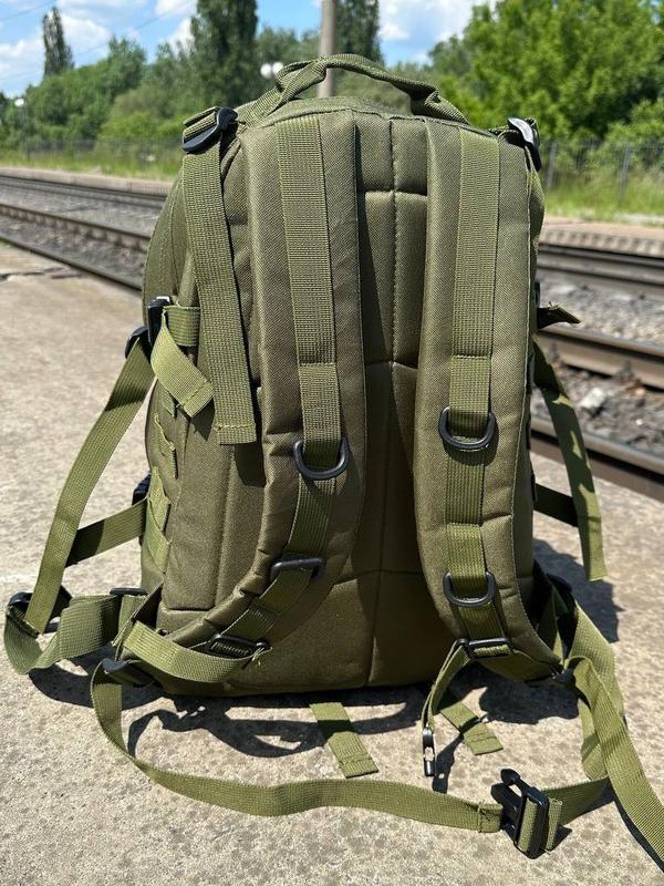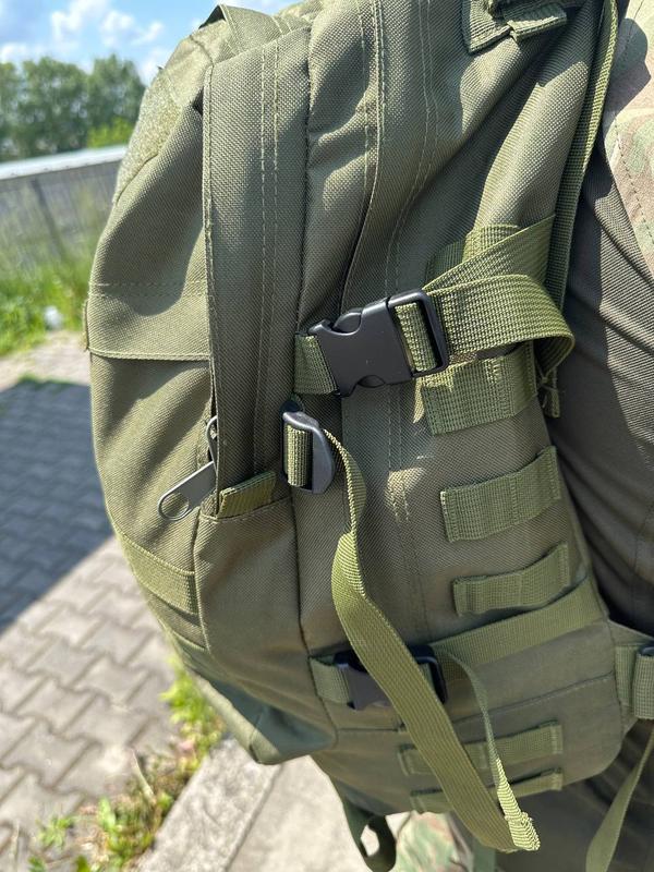 Тактичний рюкзак з модульною системою. - Матеріал: водонепроникний нейлон - Міцні пластикові пряжки. - Жорстка спинка - теплоізоляція - 2 камери, 2 кишені - Розміри: 50 х 36 х 26 см - Ємність: 44 л