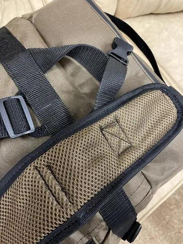 одного боку є відділ для взуття що має перегородку.Також пришиті стропи для