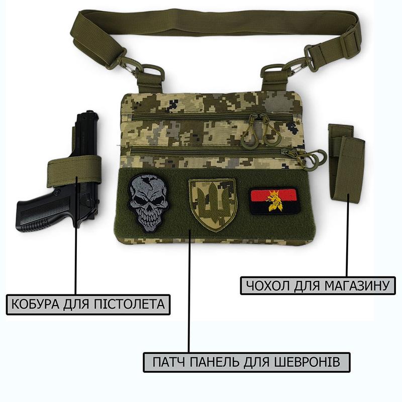 Ця тактична наплічна сумка-кобура з піксельним камуфляжем є ідеальним рішенням