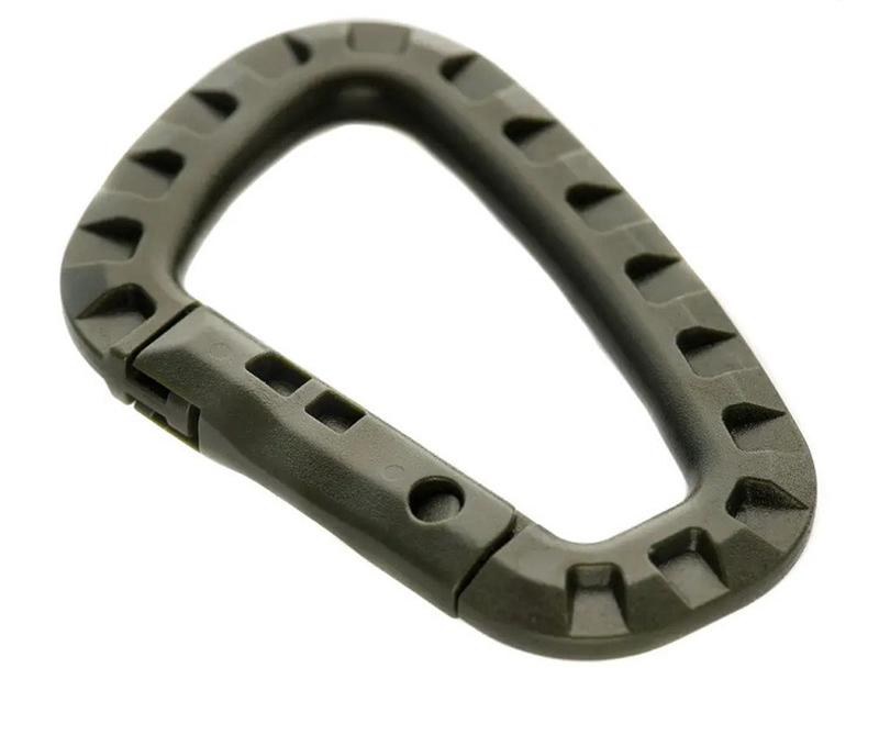 Карабін пластиковий призначений для закріплення необхідного Вам спорядження на розвантажувальному жилеті, поясі або іншому місці. Карабін з високоякісного ABS-пластику. Довжина карабіна становить 8,5 сантиметрів. Габарити: 85 х 56мм Матеріал: ABS-пластик Особливості: Карабін не призначений для альпінізму та інших видів спорту пов'язаних з високим навантаженням.