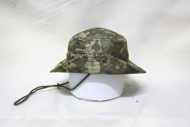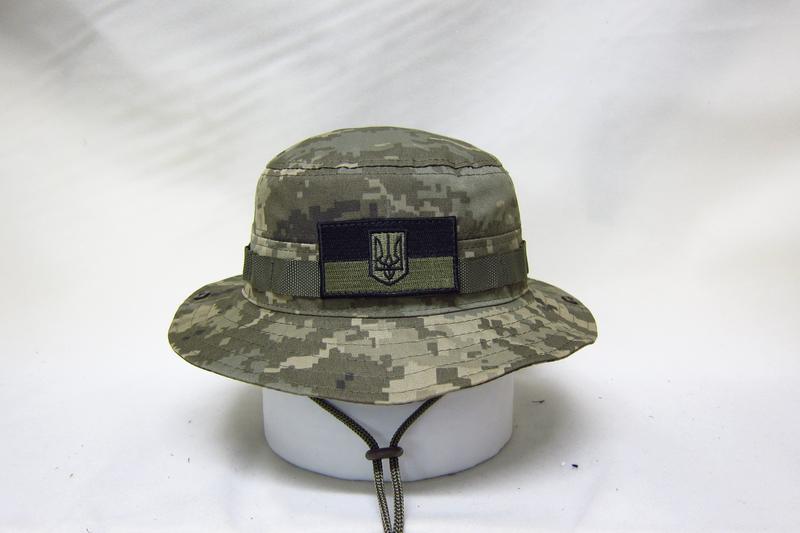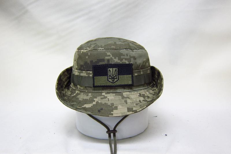 Панама тактична камуфльований малюнок піксель мм-14. Пошита з щільної спеціальної тканини . Спереду пришитий шеврон прапор України. Склад -50% бавовна , 50% поліестр. Тканина з водовідштовхувальним просоченням. Розміри 54-56, 57-59, 60-62 з регулюванням.