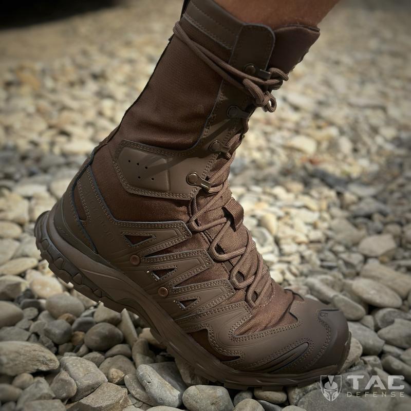 XA FORCES JUNGLE — це високі та легкі тактичні черевики, які ідеально адаптовані до спекотного та вологого середовища для швидкого пересування в найкритичніших ситуаціях. Бренд Salomon являється офіційним постачальником спец. підрозділів міністерства оборони та міністерства внутрішніх справ Франції. Дана модель заснована на культових кросівках Salomon XA PRO 3D, це взуття розроблене для спецназу, і є міцнішим загалом та має міцнішу підошву.Одношаровий верх і отвори для відведення води, розташовані з обох боків стопи, сприяють швидкому висиханню.Взуття оснащене стандартизованою антиперфораційною підошвою, яка забезпечує зчеплення з будь-якою поверхнею. Складається з трьох компонентів: матеріалу верху, внутрішньої підкладки та шнурівки. Ці три елементи разом створюють індивідуальну і точну посадку, яка забезпечує підтримку стопи, гарантуючи при цьому гнучкість і комфорт. Устілка OrthoLite®, відформована відповідно до контурів вашої стопи, забезпечує чудову амортизацію, повітропроникність і довговічність, підвищуючи комфорт і продуктивність вашого взуття; Шасі 3D Advanced Chassis - це інноваційна система підошви, розроблена компанією Salomon для підвищення стабільності, захисту та комфорту у взутті для активного відпочинку та спорту. Ця технологія використовується у взутті для бігу, хайкінгу, гірського туризму та інших видів активності в природному середовищі. Характеристика: Верх взуття зроблений із сітчастого матеріалу; Сітка для захисту від сміття (Anti-debris Mesh); Гладка вставка для захисту шнурівки; Матеріал - невідбивний; Захисний бризковик та посилена пʼята; Водонепроникний матеріал ; Шкіряне покриття ; Закриті люверси; Підошва Contagrip® та проміжна підошва MD EnergyCell подвійної щільності; Шасі: 3D Advanced Chassis™; Підкладка: сітка і текстиль; Технології: устілка OrthoLite® / посадка Sensifit™