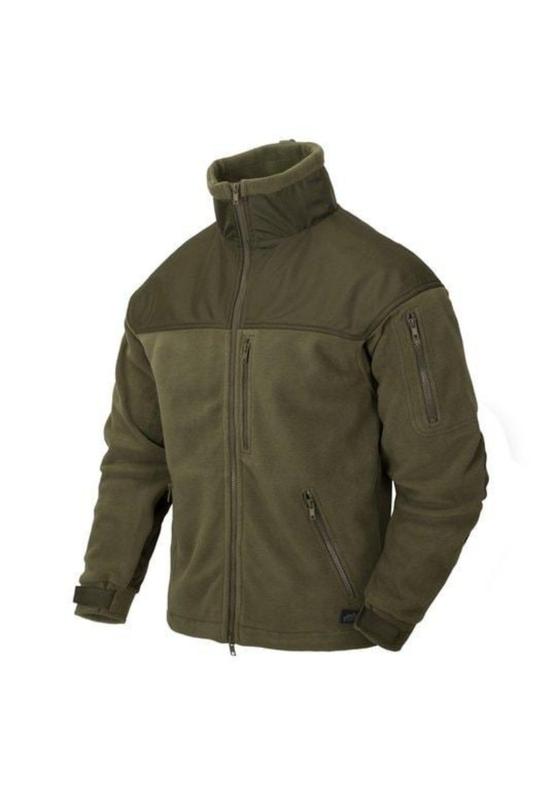 Helikon-Tex® CLASSIC ARMY Jacket - флисовая куртка создана, как средний согревающий слой для ношения отдельно или вместе с верхней одеждой. Отлично удерживает тепло, обеспечивает надежную защиту от ветра и легкого дождя. Плечи и локти усилены дополнительным слоем прочного нейлонового материала. Куртка оснащена четырьмя карманами различной величины. Особенности: Воротник-стойка утягивается шоккордом с фиксатором Фронтальная застежка - двухзамковая молния YKK® с термопланкою и защитой подбородка Два нижніх бічних кишені, один нарукавний, одна нагрудна кишеня з отвором для шнура - застібаються блискавками Плечі і лікті укріплені нейлоновими вставками Манжети рукавів регулюються клапанами на липучках Низ куртки регулюються шоккордом з фіксаторами Артикул виробникаBL-CAF-FLКількість кишень4МатеріалFleece 300g/m2, Polyester 100%Вага840 г